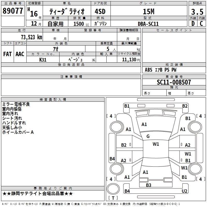 NISSAN TIIDA LATIO - лот 89077