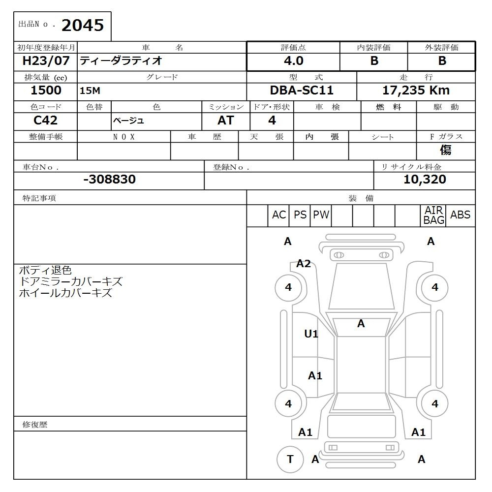 NISSAN TIIDA LATIO - лот 2045