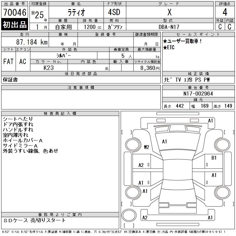 NISSAN TIIDA LATIO - лот 70046