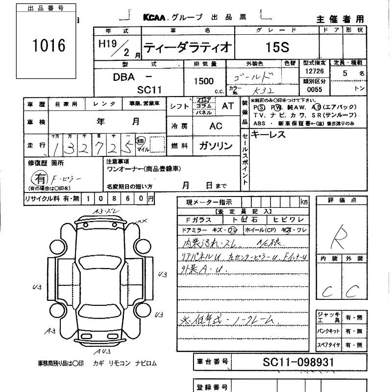 Все аукционы NISSAN TIIDA LATIO