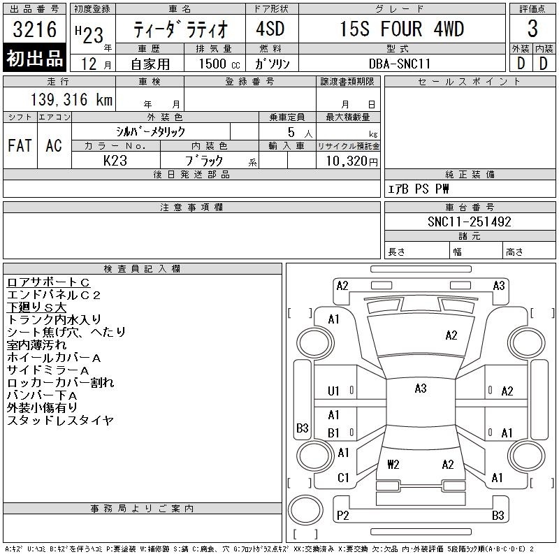 Все аукционы NISSAN TIIDA LATIO