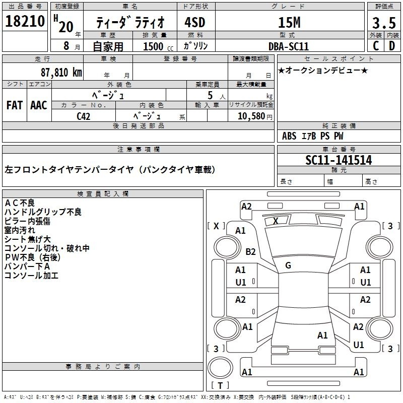 NISSAN TIIDA LATIO - лот 18210