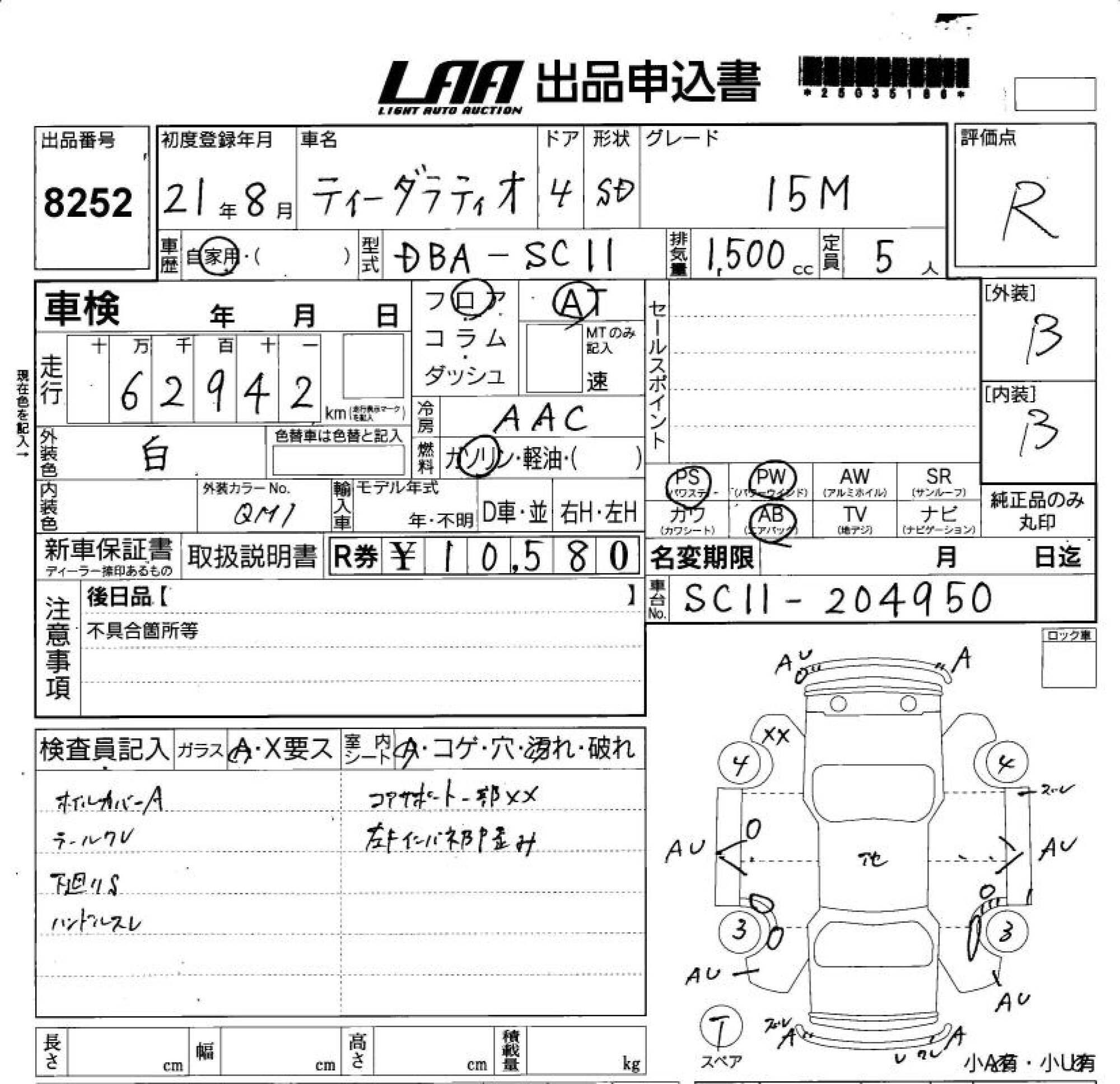 Все аукционы NISSAN TIIDA LATIO