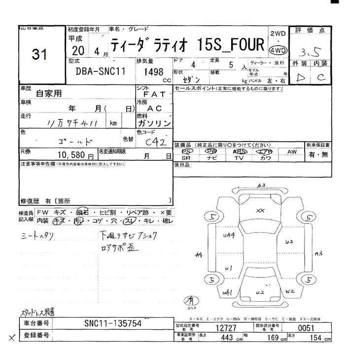 Все аукционы NISSAN TIIDA LATIO