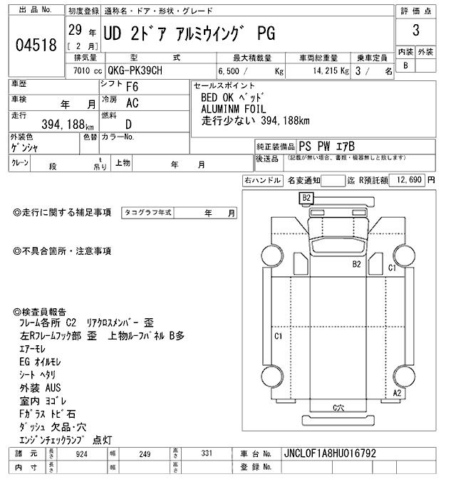 NISSAN UD ALUMINIUM WING - лот 4518