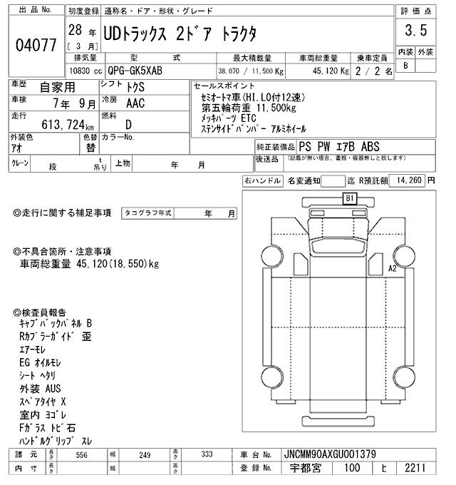NISSAN UD TRACTOR HEAD - лот 4077