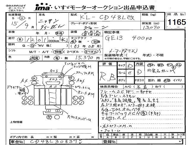 NISSAN UD CHASSIS - лот 1165