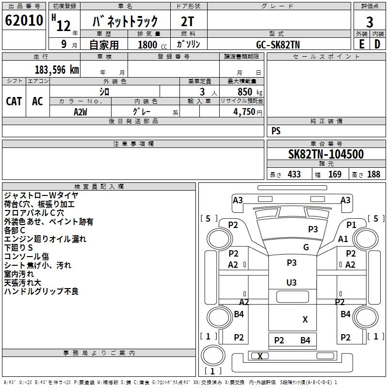 NISSAN VANETTE TRUCK - лот 62010
