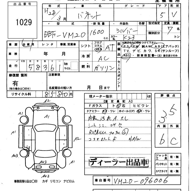 NISSAN VANETTE VAN - лот 1029