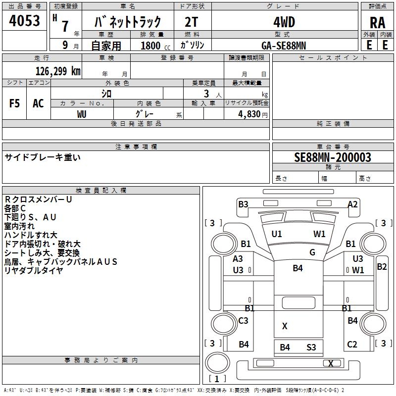 NISSAN VANETTE TRUCK 4WD - лот 4053