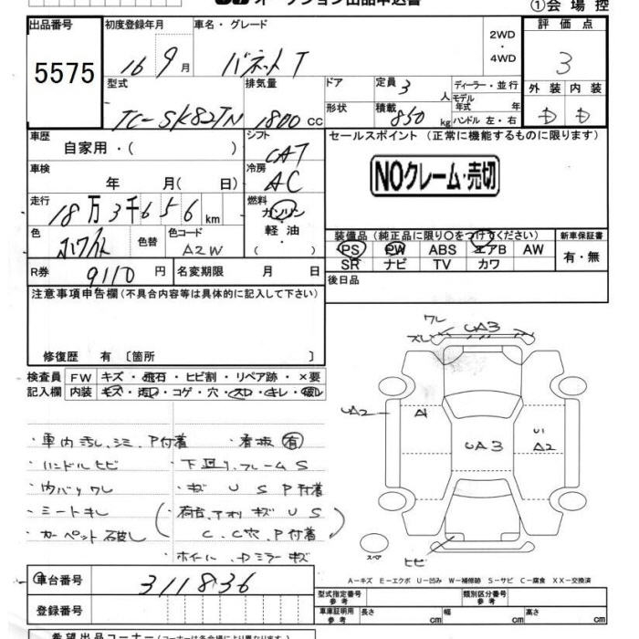 NISSAN VANETTE TRUCK - лот 5575