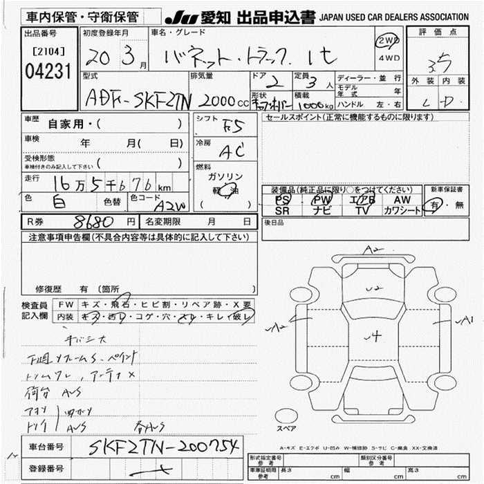 NISSAN VANETTE TRUCK 1t - лот 4231