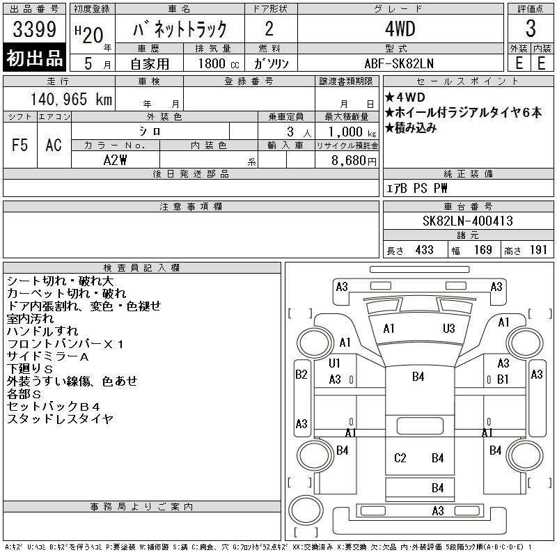 NISSAN VANETTE TRUCK 4WD - лот 3399