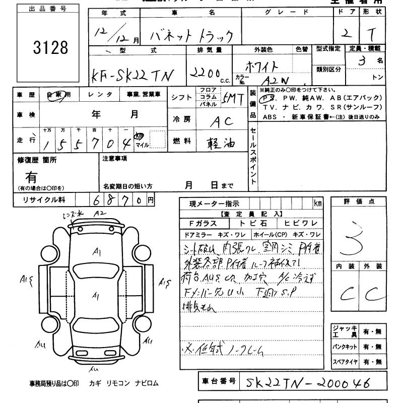 NISSAN VANETTE TRUCK - лот 3128