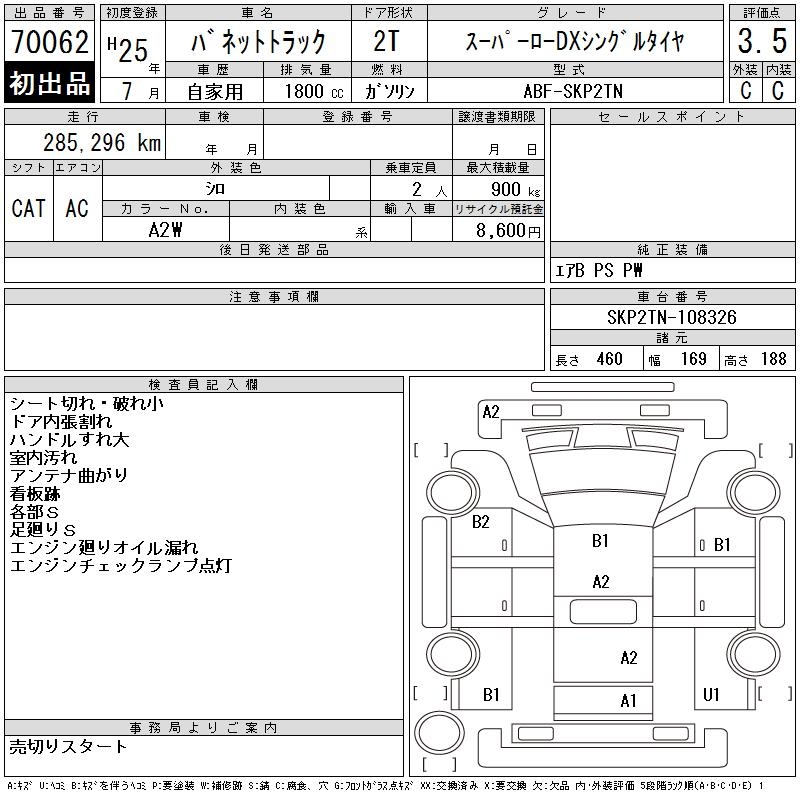 NISSAN VANETTE TRUCK SUPER LOW DX SINGLE TYRE - лот 70062