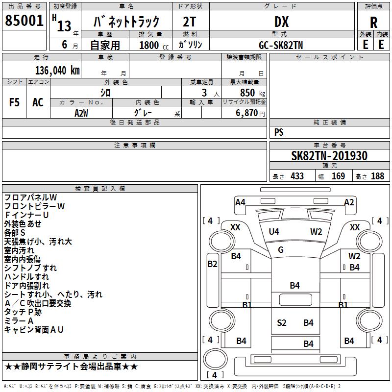 NISSAN VANETTE TRUCK DX - лот 85001