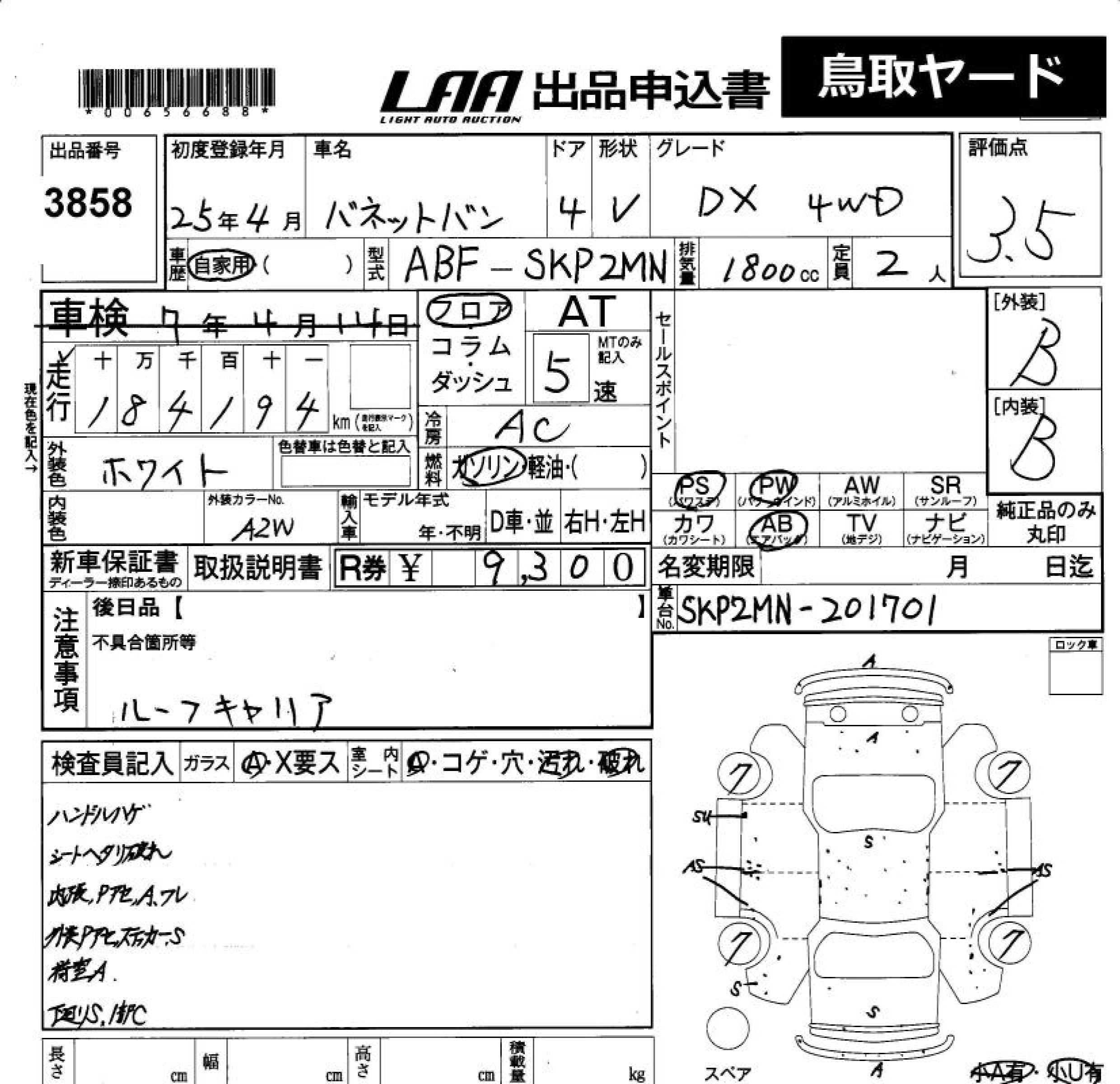 NISSAN VANETTE VAN - лот 3858