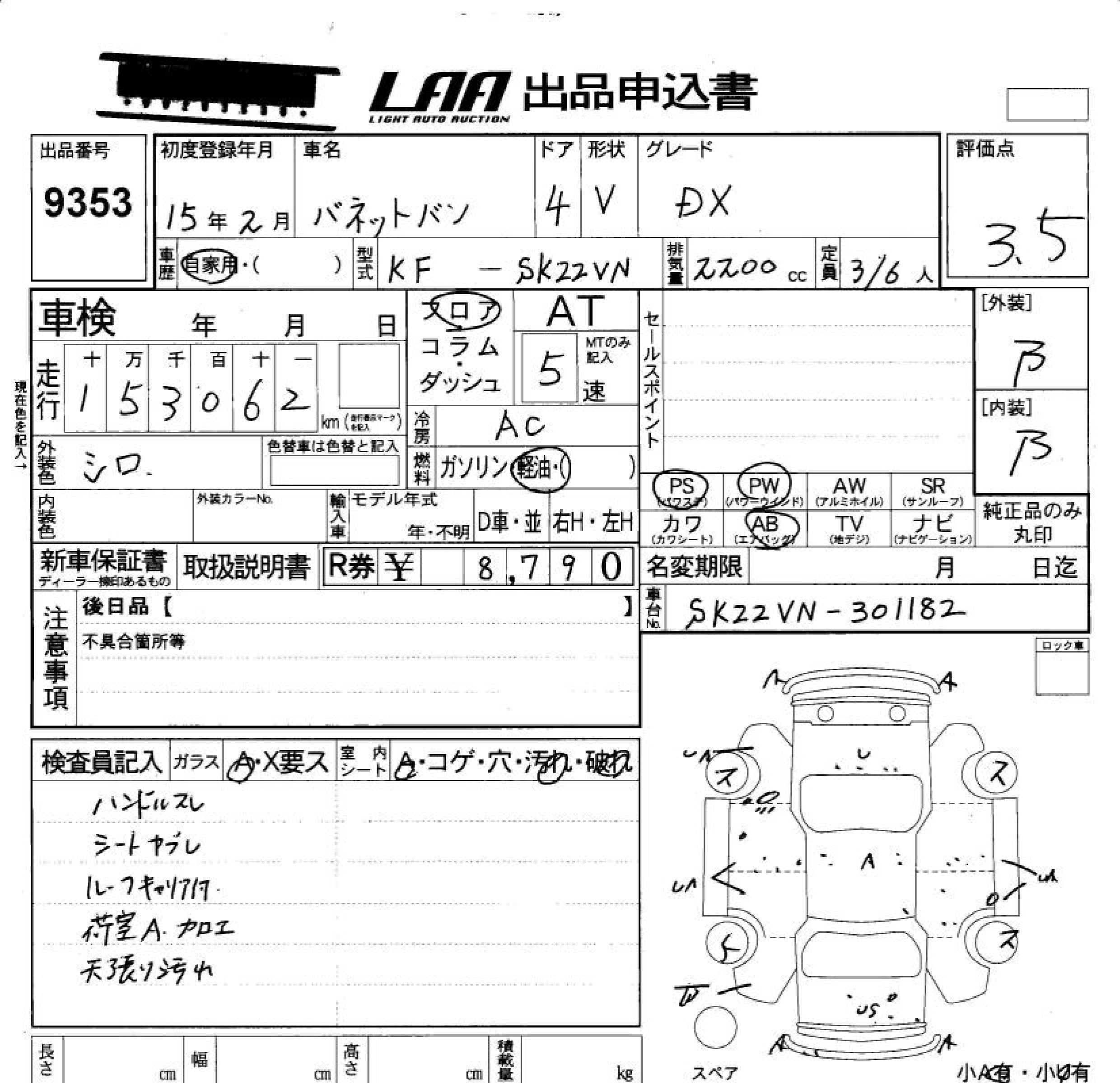 NISSAN VANETTE VAN DX - лот 9353