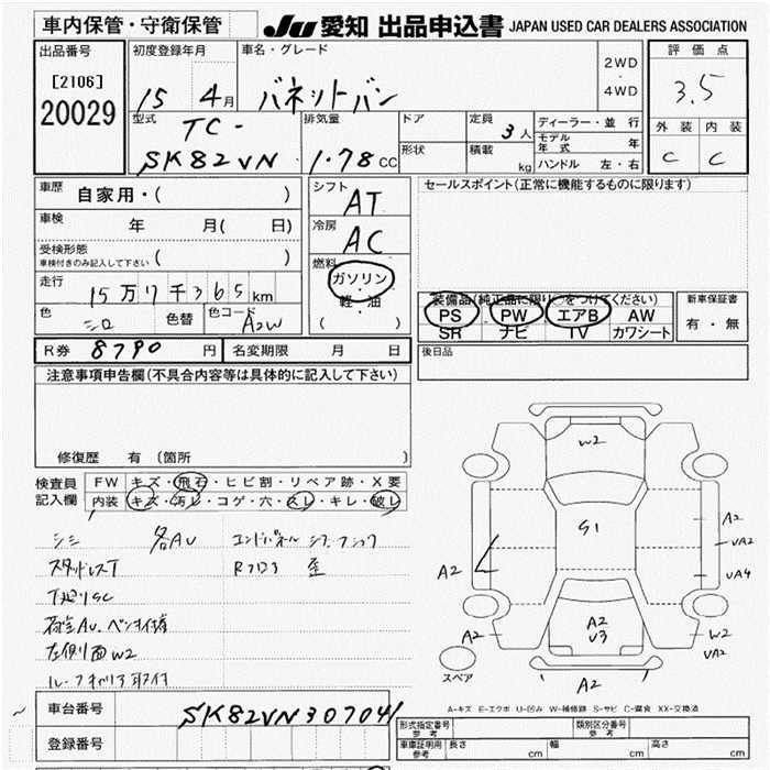 NISSAN VANETTE VAN 3 PERSON - лот 20029