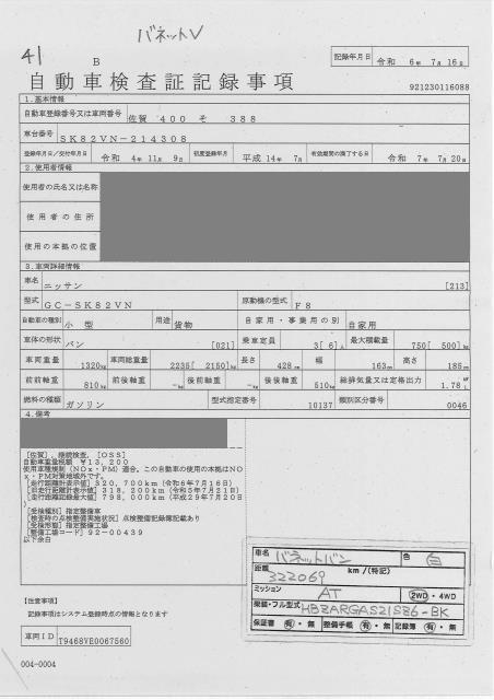 Все аукционы NISSAN VANETTE VAN