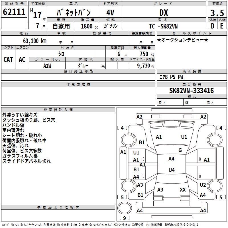 NISSAN VANETTE VAN DX - лот 62111