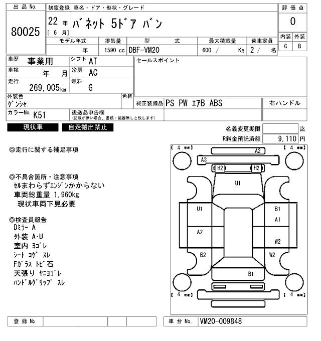 NISSAN VANETTE - лот 80025