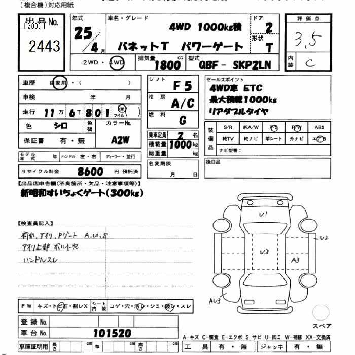 NISSAN VANETTE 4WD 1TZUMI POWER GATE - лот 2443