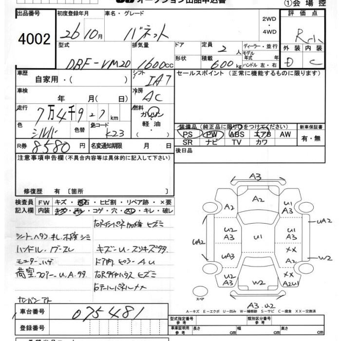 NISSAN VANETTE - лот 4002
