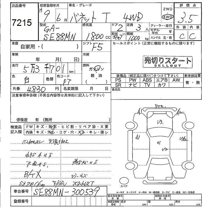 NISSAN VANETTE TRUCK - лот 7215