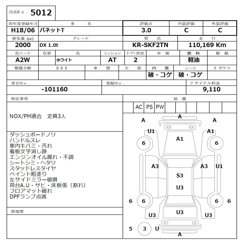 NISSAN VANETTE TRUCK - лот 5012