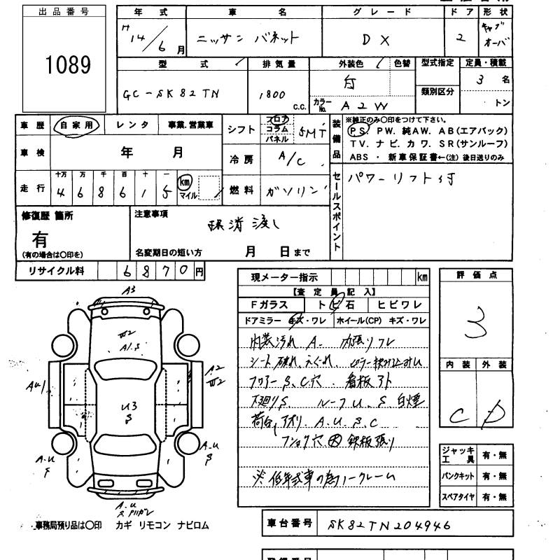 NISSAN VANETTE TRUCK - лот 1089