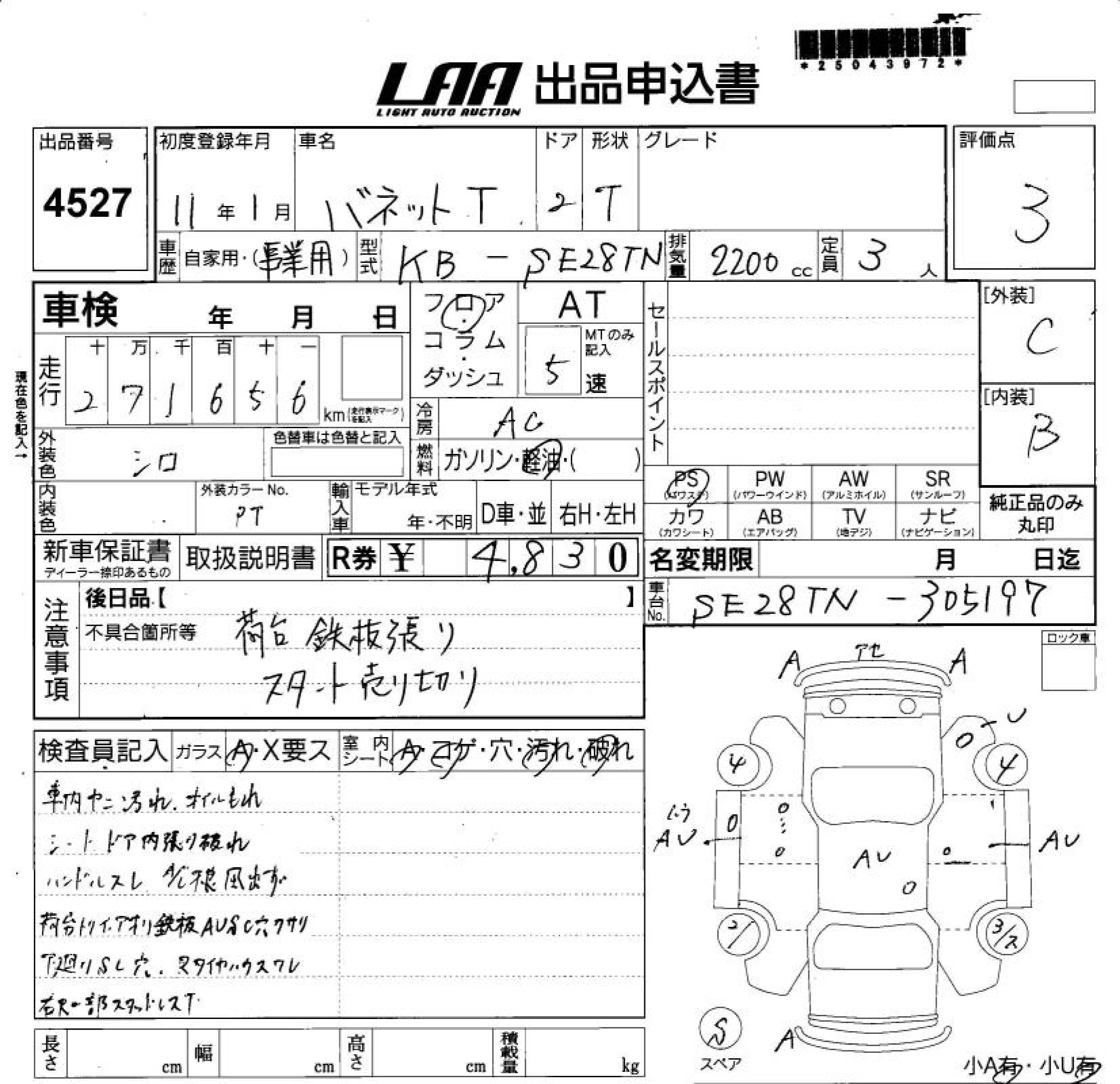 NISSAN VANETTE TRUCK - лот 4527