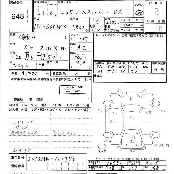 NISSAN VANETTE VAN - лот 648