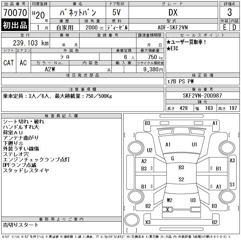 NISSAN VANETTE VAN - лот 70070