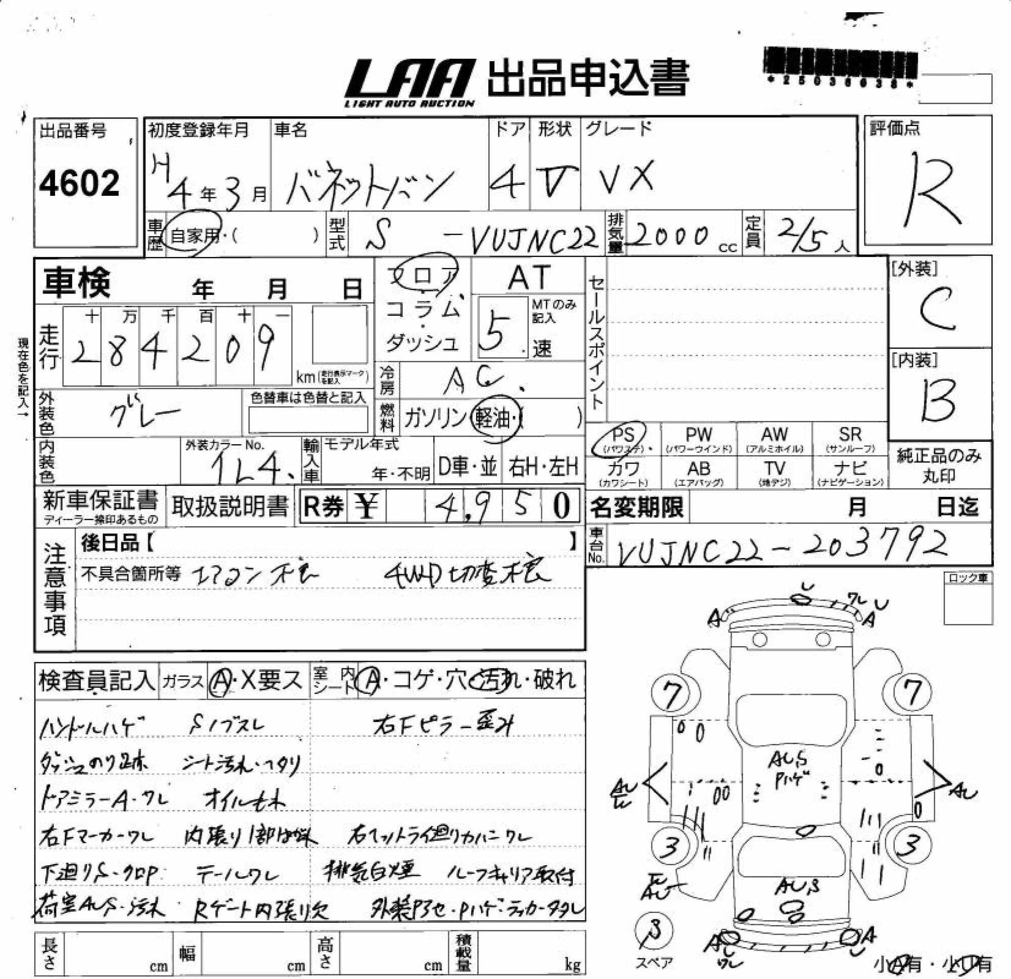 NISSAN VANETTE VAN - лот 4602