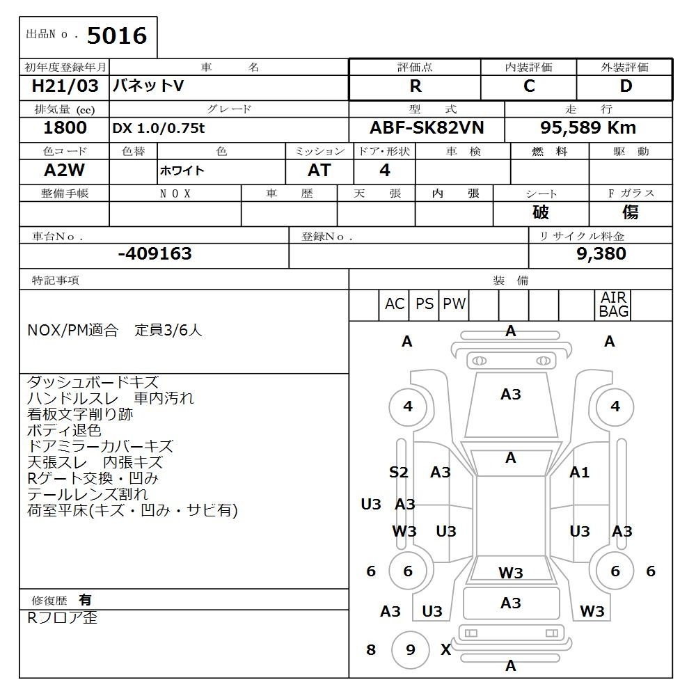 NISSAN VANETTE VAN - лот 5016
