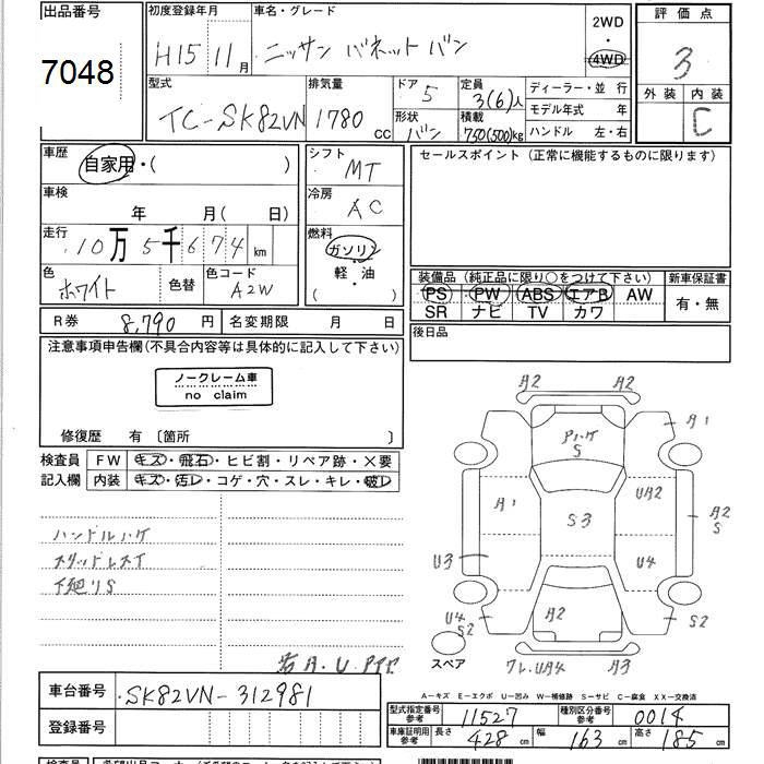 NISSAN VANETTE VAN - лот 7048