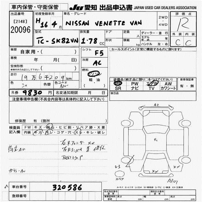 NISSAN VANETTE VAN - лот 20096