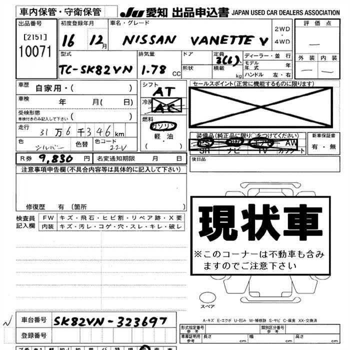 NISSAN VANETTE VAN - лот 10071