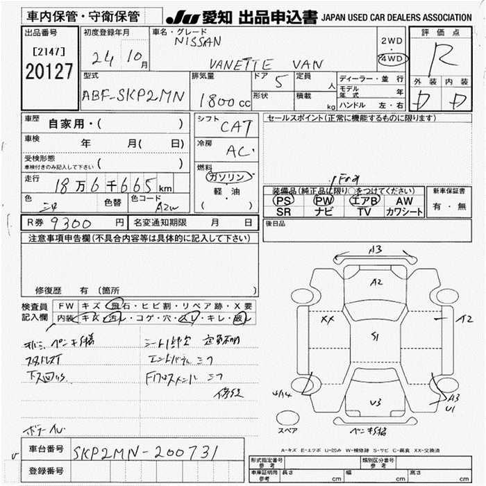 Все аукционы NISSAN VANETTE VAN