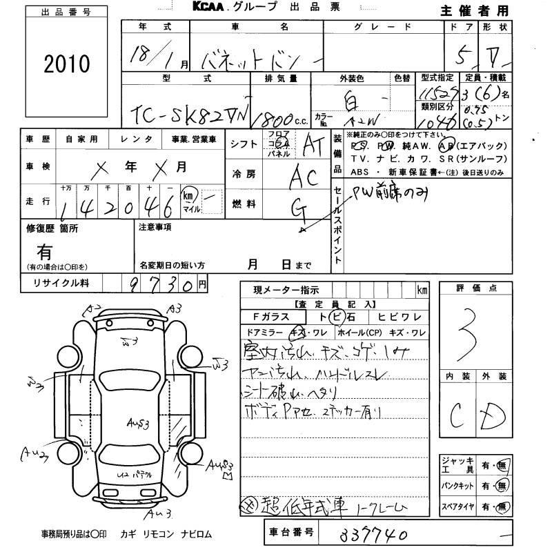 NISSAN VANETTE VAN - лот 2010