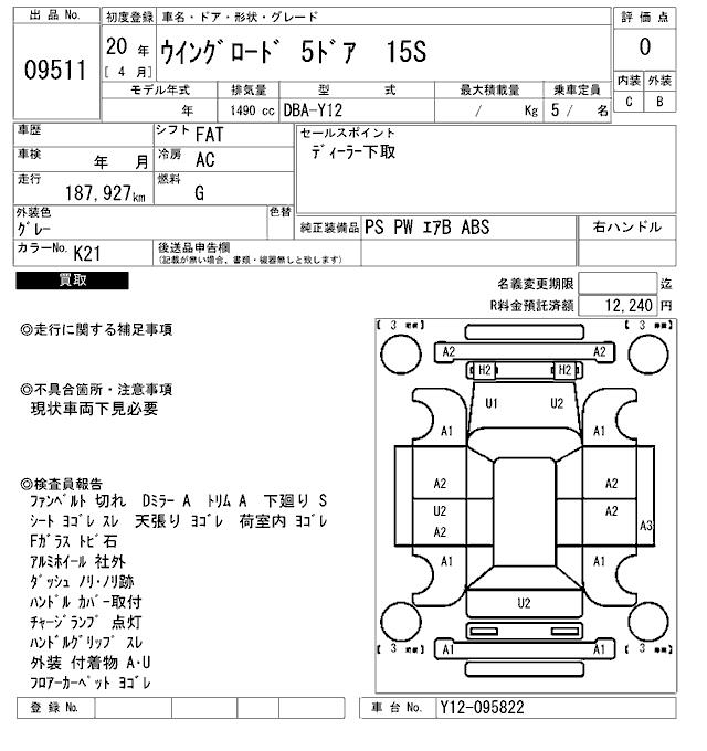 NISSAN WINGROAD - лот 9511