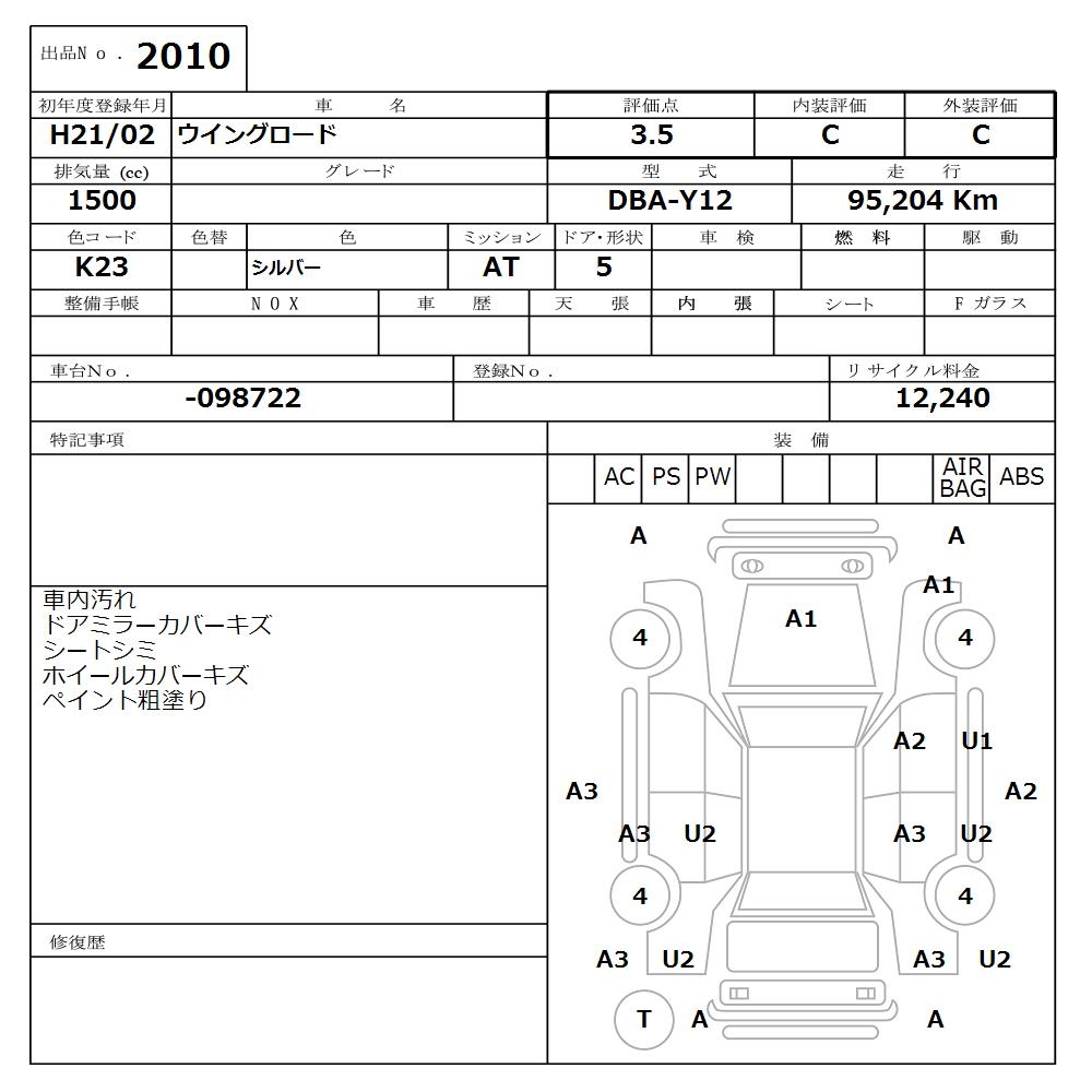 NISSAN WINGROAD - лот 2010