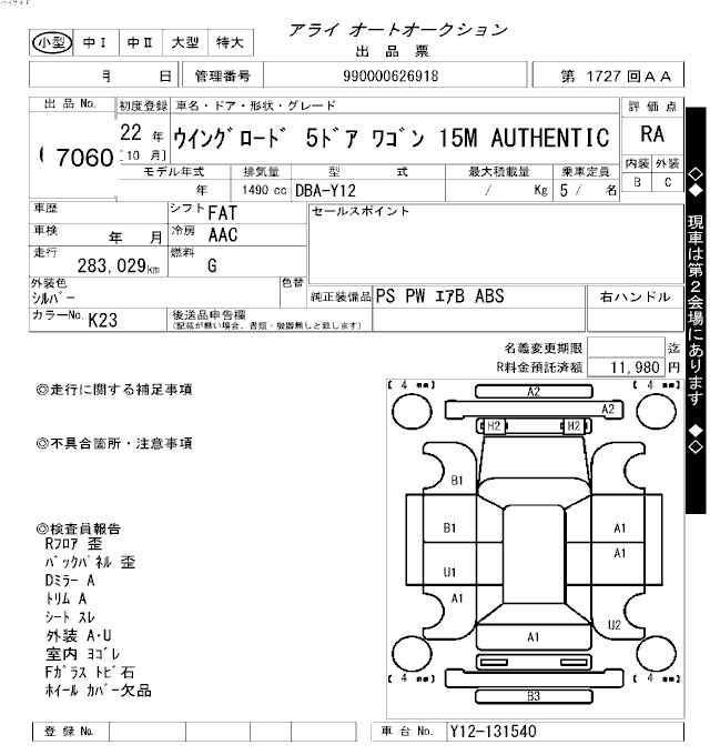 NISSAN WINGROAD 15M AUTHENTIC - лот 7060