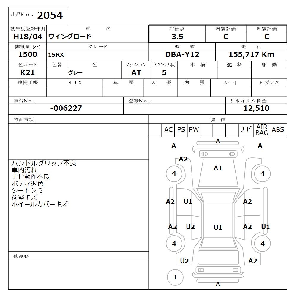NISSAN WINGROAD 15RX - лот 2054