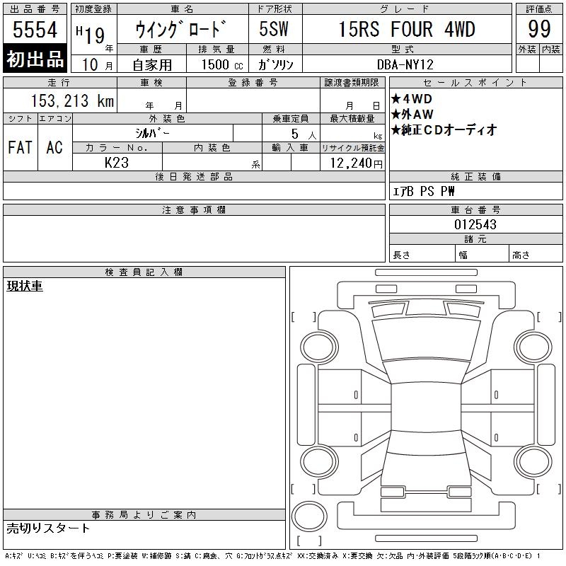 NISSAN WINGROAD 15RS FOUR 4WD - лот 5554