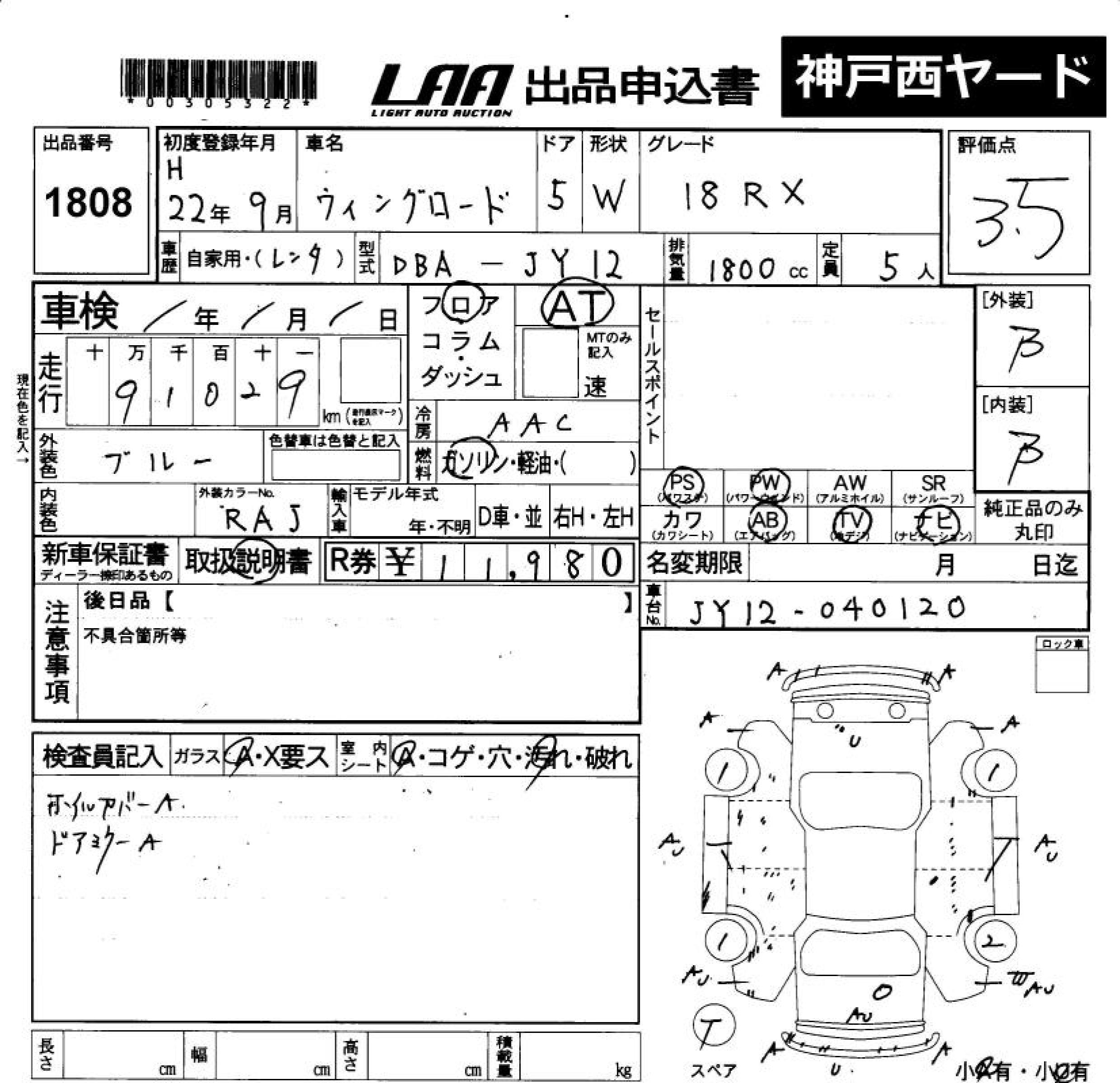 NISSAN WINGROAD 18RX - лот 1808