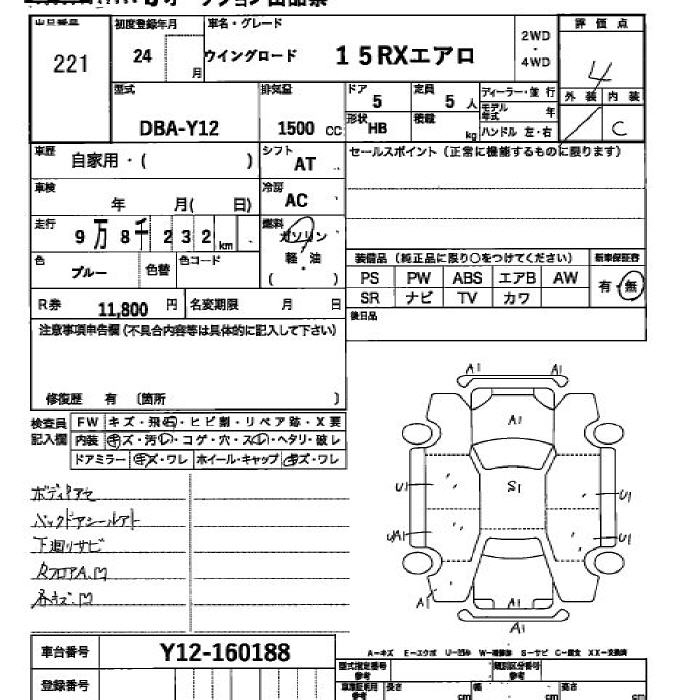 NISSAN WINGROAD 15RX AERO - лот 221