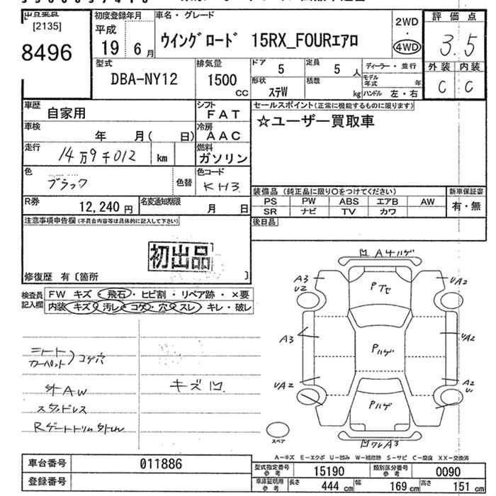 NISSAN WINGROAD 15RX FOUR AERO - лот 8496