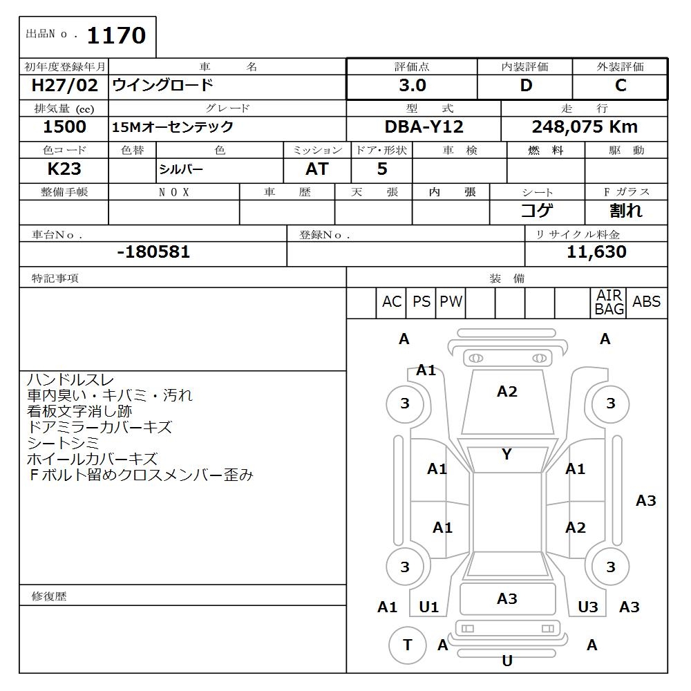 NISSAN WINGROAD 15MO-SEN TEC - лот 1170
